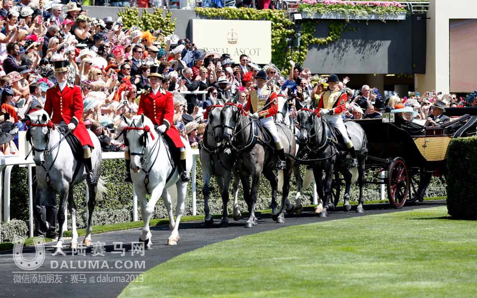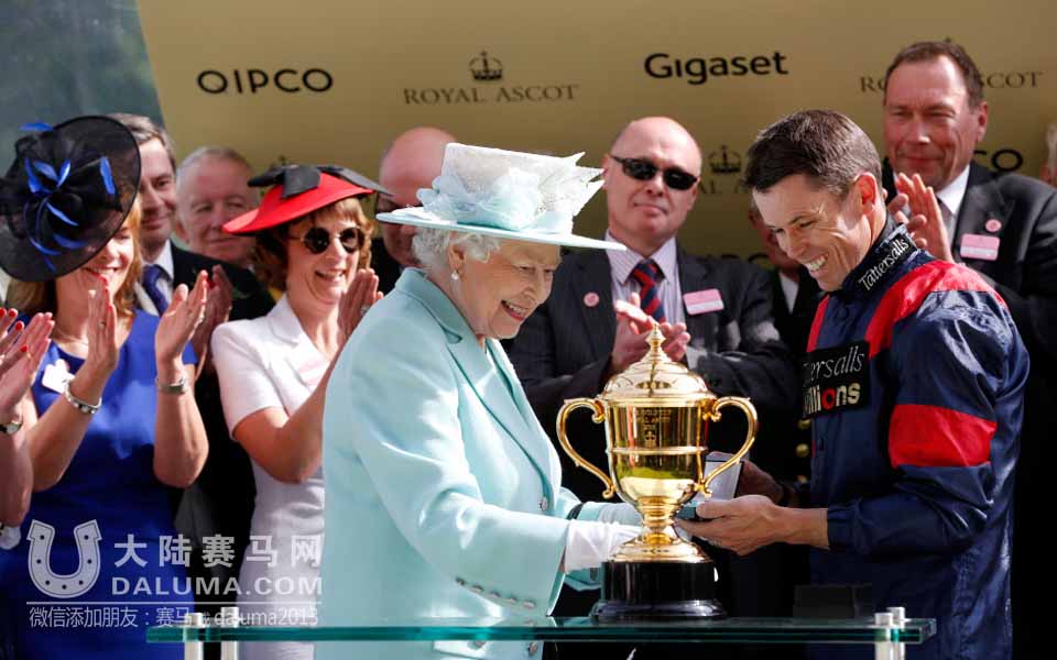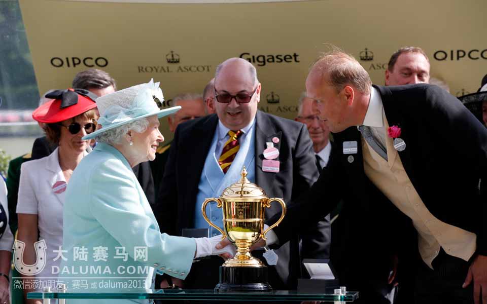 6月18日,英国皇家赛马会迎来第三比赛日“金杯日”,英女王盛装出席与现场观众一同观赛。金杯比赛结束后,女王亲自为获胜者颁发奖杯并合影留念。