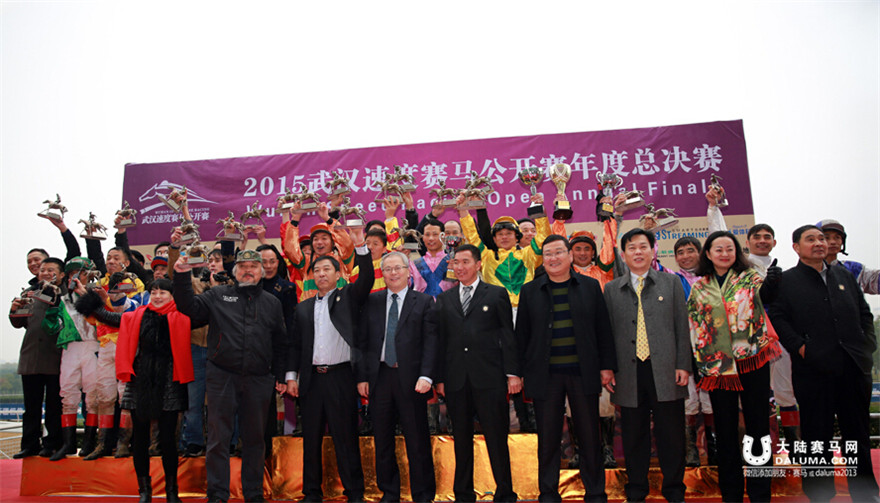 12月5日,武汉速度赛马公开赛年度总决赛在武汉东方马城隆重举行。本届赛马节上,东方马城携手全国马主,为武汉市民上演6场精彩绝伦的赛马赛事。今日赛事适逢武汉阴雨,赛事于雨中开幕。雨幕之下,马奔腾愈显雄壮,却也为比赛增加了难度,但骑师带着马为观众展现了其高超的骑术和完美的人马合一。 值得关注的是,第二场“光辉岁月·宝刀未老杯”速度赛马骑师邀请赛上,来自全国各地的第一代速度赛马骑师30余人再次相聚,其中的14位33岁以上的一代骑师参加1700米纯血马组速度赛马,各位骑师再次奋力扬鞭,感怀从前之“光辉岁月”,在中国赛马赛事上第一次倾情高歌,谱写不老传奇。最终,今年42岁的罗先科以1分55秒成绩摘得桂冠。 同时,东方马城在所有赛事结束后,现场颁发“年度马王”、“年度冠军骑师”、“年度最佳练马师”、“年度最佳马主”、“最漂亮外观马匹”、“年度我最喜爱的骑师”等奖项;并在当天到场的嘉宾及观众中,评选出“最优雅着装奖”。为了感谢各界人士对武汉速度赛马的支持,东方马城在垫场活动中,向长期支持武汉赛马的企业颁发“赞助商合作荣誉奖”等奖项。