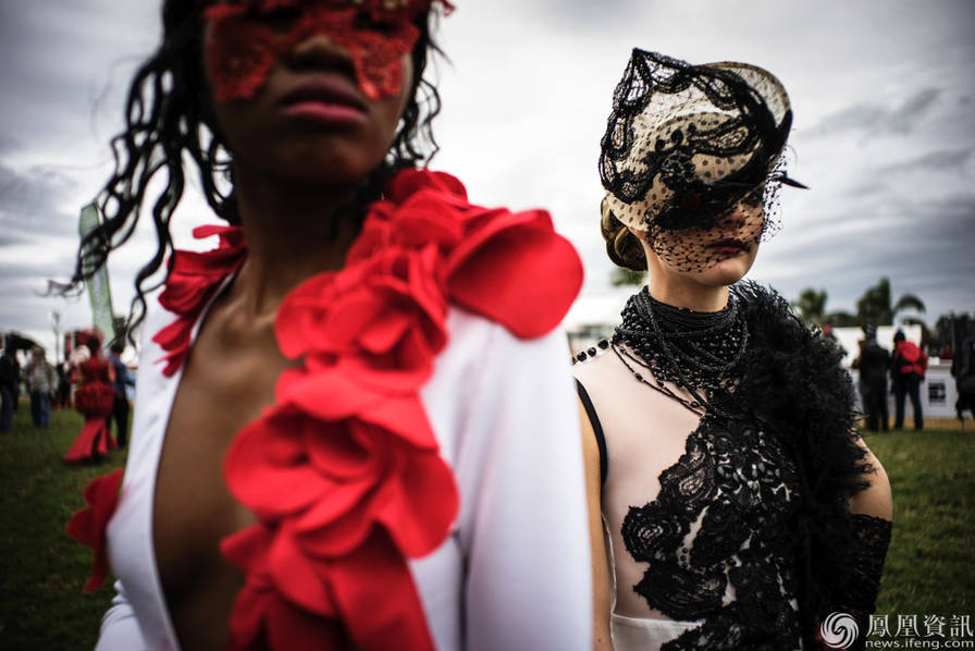 当地时间2016年7月2日,南非德班,德班举行非洲最大的赛马活动,观众盛装参加赛前时装秀。