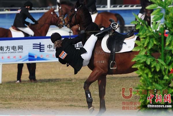 2010年11月23日,广州亚运会现代五项女子个人马术场地障碍赛中,哈萨克斯坦骑手加林娜·多尔古申娜骑马跨越一个障碍后,随马一同头部朝下栽倒在地,当场昏迷。多尔古申娜很快被赛场救护车送往医院治疗。她所骑乘的马也倒地不起,被拖至场边接受诊治。
