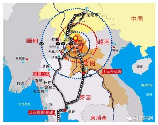 西双版纳位于云南的最南端,与老挝、缅甸山水相连,和泰国、越南邻近。西双版纳景洪港是中国国家一类口岸,与老缅泰三国商船通航,开辟了多条国际水运航道。根据中国铁路总公司”中长期铁路网规划“,在2020年前,建设由昆明起始途径西双版纳景洪市至磨憨口岸出国门的泛亚铁路中线——“中老铁路”。按照整体规划,中通路项目为昆明-磨憨-万象-曼谷-吉隆坡-新加坡,全长3894公里,是中国西南、西北等地区通往东南亚核心地区最顺直的通路。