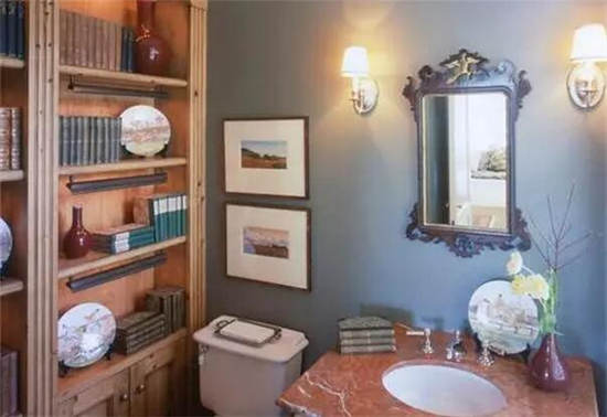事实上,在楼下的浴室中也能看到如此多的书籍。
