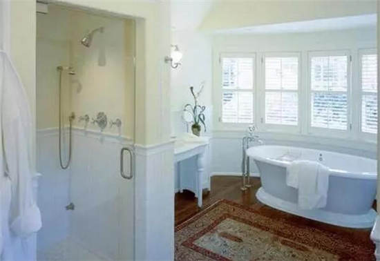 主浴室的装饰延续了厨房的风格,在外观上营造了家的舒适感。