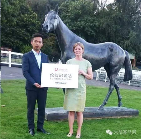 大陆赛马网创始人、CEO李鹏与《国际纯血马》杂志主编(International Thoroughbred)Sally Duckett女士共同为大陆赛马网伦敦记者站揭牌