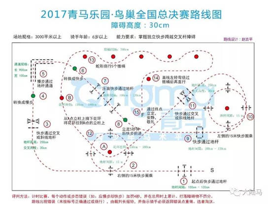 亲子路线设计:为保持趣味性,现场公布。路线由赵吉平(青马乐园赛事路线总设计师、国际马术联合会场地障碍裁判、中国马术协会场地障碍及三项赛技术代表)设计。