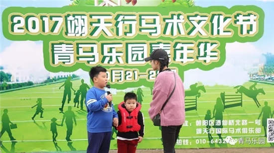 哥哥:“昨天我爸爸担心下雨没来,我同学说很好玩,还能骑马,所以今天我们很早很早就来了。因为我以前在烟台骑过马,今天是第一次骑这种小马,一点儿也不觉得害怕,就只是觉得它特别可爱!我弟弟比我还喜欢骑马,他喜欢像《西游记》里的唐僧一样骑白马,刚才还闹着不愿意从马背上下来。你们什么时候还办这种活动?我和弟弟还想来玩~”