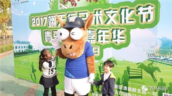 让参加活动的小朋友惊喜的是,青马乐园战略合作伙伴浪琴表北京国际马术大师赛的吉祥物“星仔”也从鸟巢来到了我们青马乐园马术嘉年华的现场!真不愧是鸟巢马术大师赛的明星吉祥物,在现场星仔可是大受欢迎呢!你看,星仔和小朋友们的互动有没有萌翻你呢?哈哈哈~看看星仔呆呆萌萌的样子,是不是可爱到飞起?