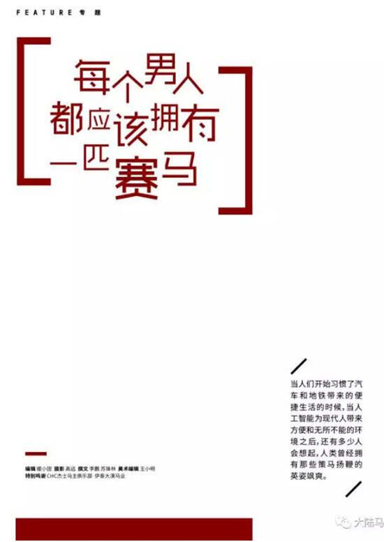 《时尚先生》8个整版告诉你:每个男人都应该拥有一匹赛马
