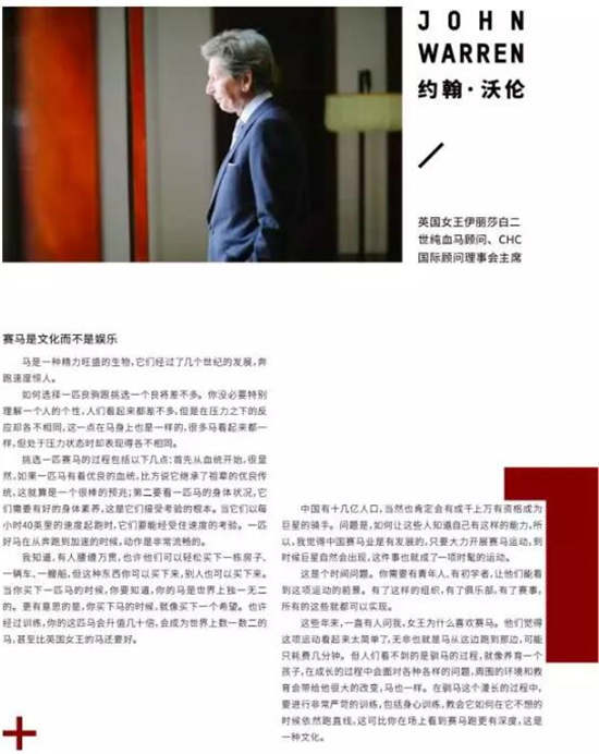 每一匹赛马都经历过严苛的培养和细致的训练,看着它们仿佛战士一般冲向赛道,我们无从知道它们的成长过程。这一次,Esquire采访了赛马界的专家:英国人约翰·沃伦是英国女王伊丽莎白二世的赛马经理、马来西亚人张祖德给我们讲述了他和他的马主俱乐部生意,我们还请到了国内权威的赛马传媒机构“大陆赛马网”的创始人李鹏,三个男人一起为我们讲述了赛马业的前世今生。