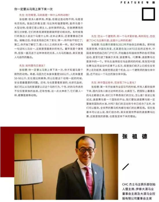张祖德:第一年开始做专业驭马节的时候,所有人都劝我停下来,国内没有人做过这样的活动,太疯狂了。把国际上最著名的马主都请过来,他们又不熟悉我们的文化,怎么做?