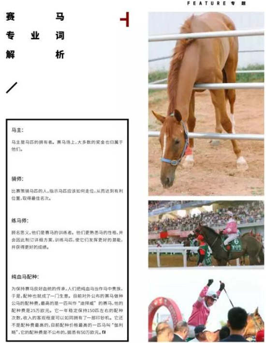 赛马是全世界人都为之疯狂的世界级运动,它是投资、是时尚、是社交、是文化、是体育、是旅游,大概全世界也只有赛马,可以用简单的两个字涵盖诸多的行业。我们在英国的阿斯科特赛马会,会看到最绅士的穿着礼仪;在法国戴安娜赛马节,则是女性荷尔蒙和魅力涌动的帽子盛宴。