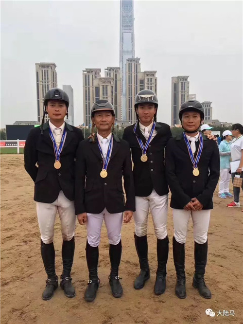 2017年8月29日,备受各界关注的第十三届全运会马术项目比赛在天津环亚马球公园拉开战幕。在首日进行的场地障碍团体赛决赛中,广东队凭借稳定的发挥,获得马术首金。上海队、新疆队分获银牌和铜牌,上届全运会冠军内蒙古队获得第四名。比赛的激烈程度不言而喻,而由2008年北京奥运马术骑手李振强、2014年南京青奥会参赛骑手李耀锋、2014年亚运骑手梁锐基、2010年亚运骑手陈景川领衔的广东队获得的这枚金牌含金量十足!