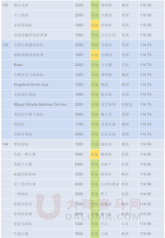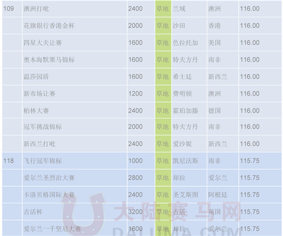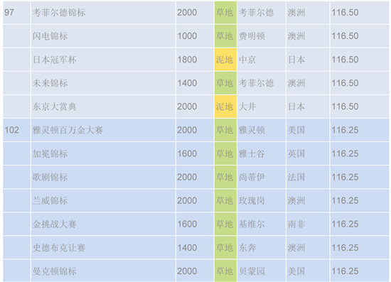 1.选取全球范围内3岁及以上年龄马参加的一级赛;