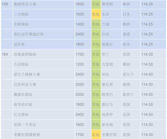 3.赛事的评分依据前四名马匹的评分而定,前四名马匹的评分越高,赛事的等级评分就越高。