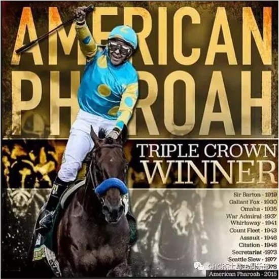 2015年“美国法老”(American Pharoah)打破尘封37年没有赛马问鼎的美国三冠王的记录,成为一百多年历史上第12匹成就三冠王伟业的赛驹,此后在美国纯血赛马界的最高奖日蚀奖(Eclipse Award)中,以261票全票当选年度马匹(Horse of the Year)和冠军三岁雄马(Champion Three-Year-Old Male Horse)两项大奖。