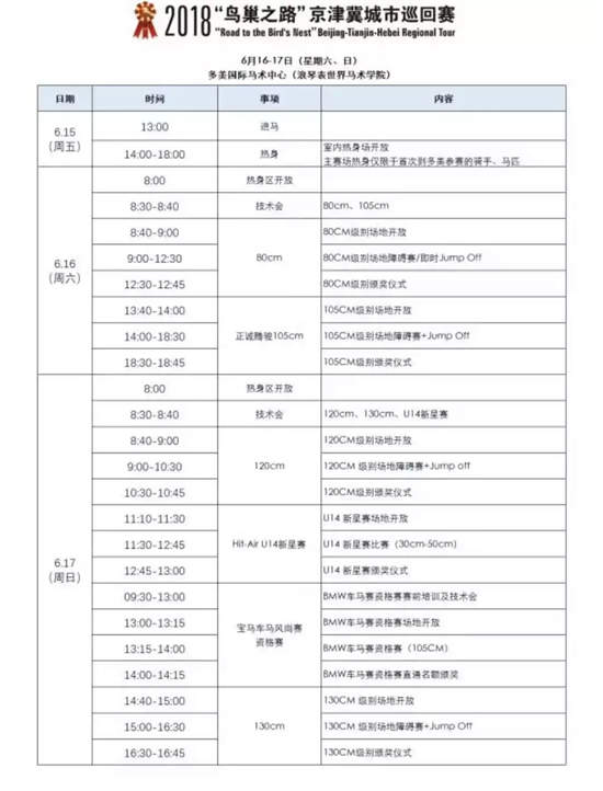 6月16-17日,2018“鸟巢之路”京津冀城市巡回赛第二站将在多美国际马术中心(浪琴表世界马术学院)激烈开赛。