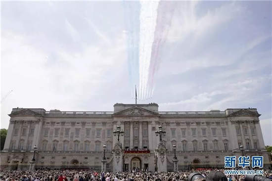 报道称,女王身穿一袭亮蓝色套装,神采奕奕。查尔斯亲王的妻子卡米拉和威廉王子妻子凯特都身穿淡蓝色,一同搭乘马车。梅根则小露性感,身穿粉红色的削肩洋装。威廉和凯特的一双儿女乔治王子及夏洛特公主照样相当吸睛,在白金汉宫阳台上观看空军仪式。