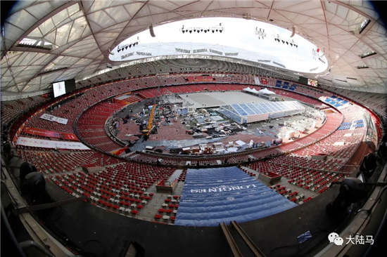 在历经三天三夜不停歇的搭建工作之后,呈现在观众眼前的是近一万平米的国际标准马术比赛场地。3825平米的篷房崛地而起、7500平米的赛事沙地平整不紊。近25000平米的施工面积,每一平方米都刻画了赛事的严谨专业。7000平米喷绘画面,汇集了赛事方对于马术源于内心的尊重和热爱;专业的团队不知道多少次往返于3825平米的243个马厩区,为身价合计过亿的马匹检查、清洗、喂食;骑手们纵身于2100平米的热身场和4800平米的比赛区,熟悉即将大展拳脚的场地;超过1500吨的沙地纤维被倾倒铺满在奔跑过51位奥运会金牌得主的鸟巢赛场上。72小时,600余辆施工车辆近2000车次川流不息的进出鸟巢,倾注着无限的热爱。超过4000位工作人员彻夜未眠,用自己的双手为国内外顶尖骑手在鸟巢搭建出了一个马术圣殿----第八届浪琴表北京国际马术大师赛的赛前准备工作正式完工。
