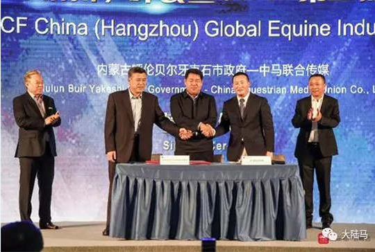 在下午场的峰会上,首先进行的是两场重量级的签约仪式,分别是:澳洲九龙马会与法国国家马业马术学院的教育合作签约仪式、内蒙古呼伦贝尔牙克石市政府与中马联合传媒关于发起“世界传统驯马大会”的签约仪式,国内外的马业巨头强强联合,势必将推动中国马业走向新时代。