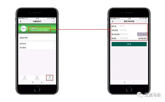 用户可以通过关注“玉龙马会”官方微信公众账号(ID:yulonghorse)在首页点击“网络拍卖”进入“2019玉龙网络拍卖会”手机客户端。进入手机客户端之后点击“允许”,进入网络拍卖会,在该页面点击“个人中心”进入“手机绑定页面”绑定手机并完成注册(如下图所示)。