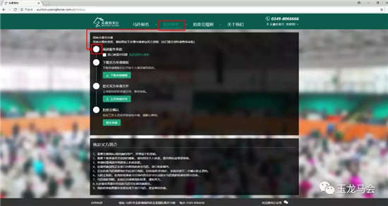 登录后可在“竞拍报名”页面完成买方资质申请,成为买方参与竞拍(如下图所示,具体操作流程可参考:3分钟教你如何用电脑在网上进行马匹交易,玉龙网络拍卖会即将开始!)。