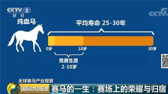 纯血马的平均寿命高达25到30年,但竞赛生涯大多是2到10岁这几年。一般纯血马不到两岁就要开始接受训练,它们也在这个时候迎来一生中的“高光时刻”。