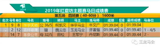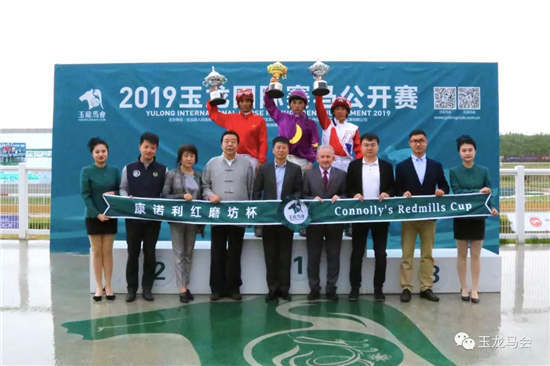5月18日,2019玉龙国际赛马公开赛第二赛事日——红磨坊主题赛马日顺利举行。当天共计5场大赛,64匹赛驹出赛,赛事总奖金额34万元人民币。其中第2场二+班赛(70分及以上)1000米赛事,高班赛驹同场竞技,难分伯仲,最终“小家碧玉”凭借后程强有力的冲刺夺得了冠军;第3场康纳利红磨坊杯1800米赛事,在玉龙春季拍卖会上成功觅得新东家的“吉祥使者”于最后的冲刺阶段上演惊天大逆转,捧得金杯。另外,第5场四班赛(40-60分)1600米赛事冠军“华宇天地”夺得冠军并将该途程赛事的成绩提高了将近4秒。