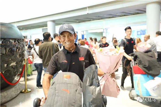 当中国马术协会职竞部部长、中国马术队领队胡彪,中国马术协会职竞部副部长、中国马术队副领队贾大鹏,中国马术三项赛队中方教练单增,国家马术三项赛队队员梁锐基、边巴次仁、乔伦巴特、格桑平措以及国家马术队马工、兽医等团队成员依次在首都国际机场的接机口出现时,掌声、欢呼声热烈响起。此时,中国马术协会商务部副部长陈九庆,中国马术协会会员媒体信息部副部长马佳玥等协会代表,以及中国马术三项赛队赞助商内蒙古莱德马业集团董事长兼总裁郎林、副总裁尹庆文等早已守候在接机大厅,为此中国马术三项赛队整个团队成员献上了鲜花,迎接英雄们的凯旋!
