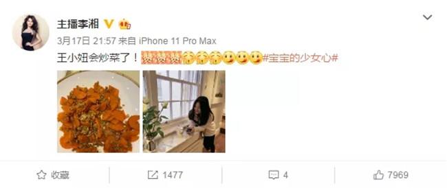 前几天,知名主持人李湘在微博更新了女儿王诗龄的动态,说道:“王小妞会炒菜了!”并加上了许多“赞”、“鼓掌”的表情,言语中透露出满满的自豪和高兴。