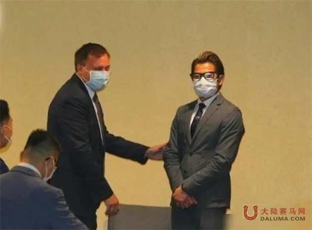 郭天王可是赛马会的座上宾,一现身,便得到了香港赛马会行政总裁应家柏的热情招待,亲自上前去打招呼。由于是特殊时期,他们并没有握手打招呼,而是用手肘撞手肘代替,新的礼仪着实让人耳目一新。行政总裁应家柏跟郭富城讲悄悄话,城城听时聚精会神,听完后两眼放光,很是兴奋,怕是收到了好消息吧。