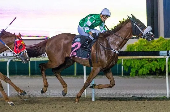 这匹父系英国种公马“马劲飞”(Makfi)的爱尔兰五岁马,出闸后便一如既往地当起领头羊,本场骑师更换为杜奕依然锐不可当,取得两连胜的同时,在新加坡的冠军头马数量也达到六个,目前在新加坡13战6冠1季。