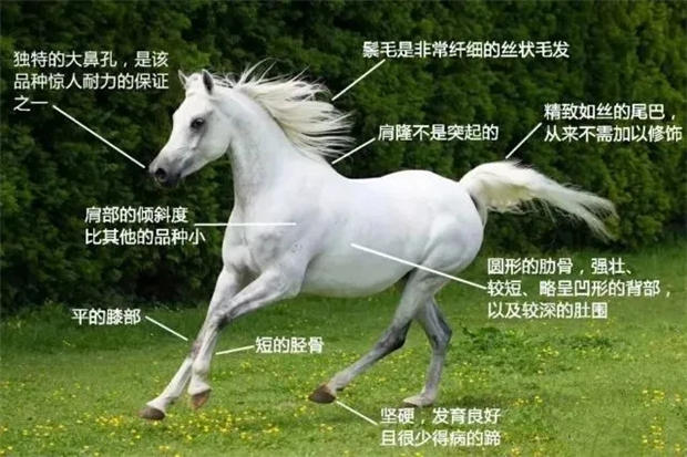 据说,阿拉伯马之所以漂亮,是因为它有独特的骨骼比例:其它品种的马一般由18根肋骨、6根腰骨、18根尾椎骨构成,即“18-6-18”的比例;而阿拉伯马是“17-5-16”的结构,这种比例基本相当于马身材的“黄金分割”。骨骼都是黄金分割,真是内外兼具的美呢。