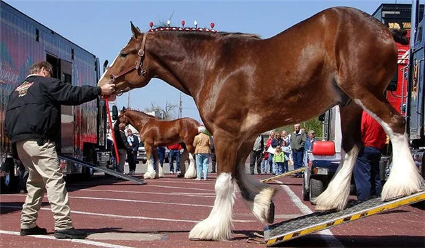 百威公司目前在伊利诺伊州拥有一个2700英亩的马场,供75匹克莱兹代尔马生活。在未成年时期,每匹小马一天可以吃下8磅草料,成年后,一天要吃30磅草料和60磅清水,这使得每匹马都能拥有超过1.5米的身高。