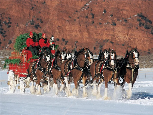 1933年春天,美国解除了禁酒令,提前得到这一消息、并已经开始偷偷生产传统啤酒的百威成为了最早恢复市场的啤酒品牌。利用公司创始人早先获赠的6匹克莱兹代尔马,百威将工厂生产出的第一箱啤酒装上马车,直接从酿酒厂拉到白宫,送给了当时的美国总统罗斯福。