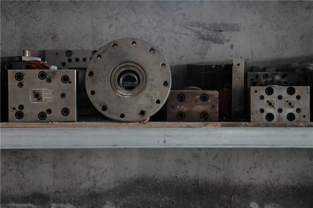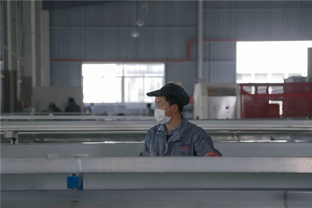 冉建忠正在把机器做出来的型材搬上架子,准备拖到下一处进行再一步的加工