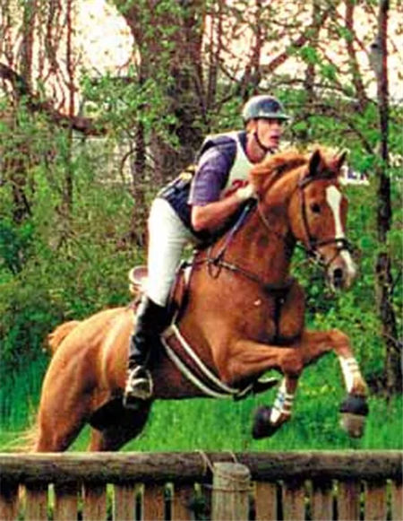 骑着他的爱驹“巴克”跳越第三道障碍时,