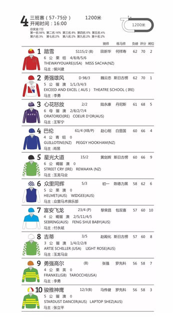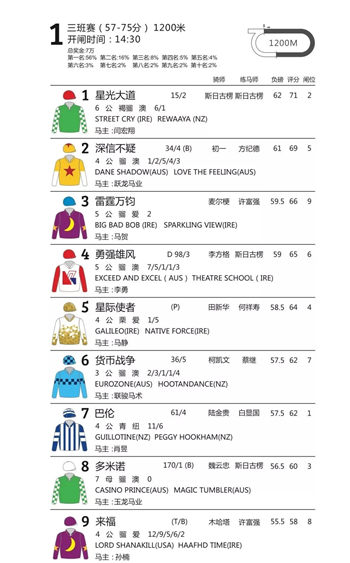 在2019玉龙国际赛马公开赛,著名种公马“街头口号”(Sterrt Cry)的6岁子嗣“星光大道”共胜出两次。本赛季,冠军赛驹的最多胜出场次是三场。
