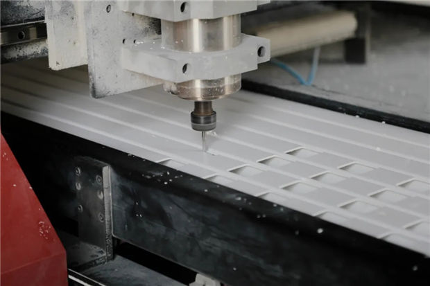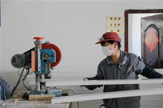 吴长香正在给型材打孔,打完孔后的型材可进行内部切割