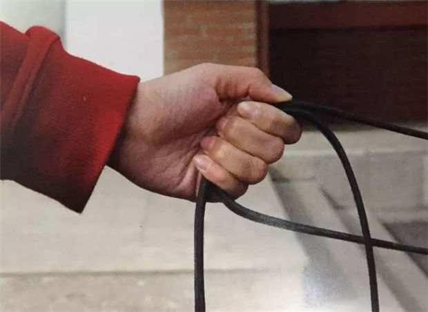 或者是左缰从小指外面、右缰由拇指与食指之间穿入,左缰在下右缰在上穿过拳心,右缰余端从掌心与小指之间,左缰余端由食指与大拇指之间穿出。