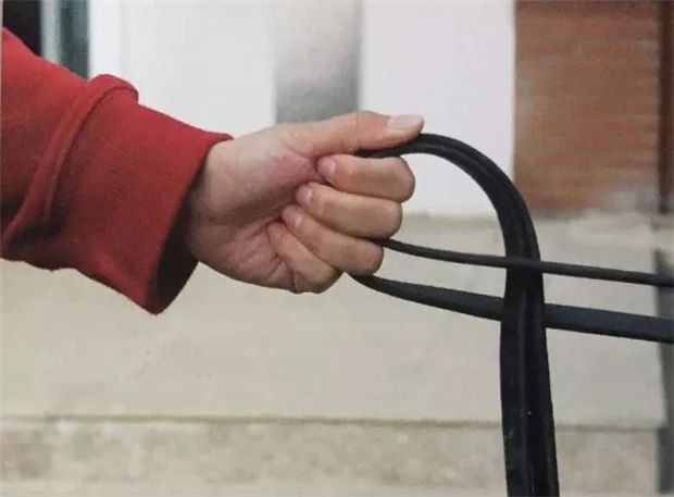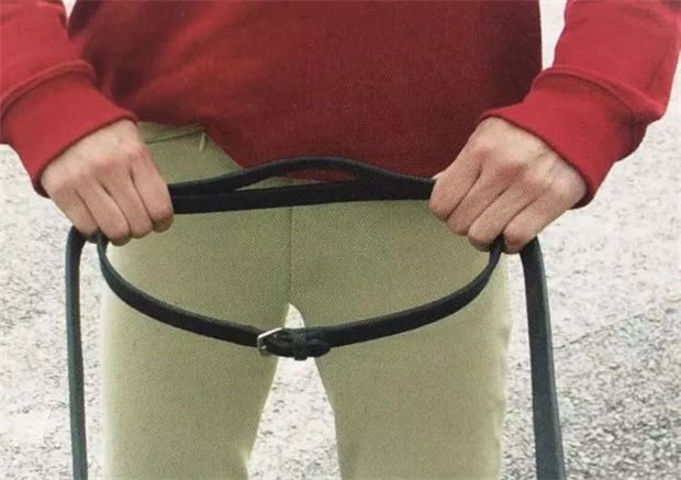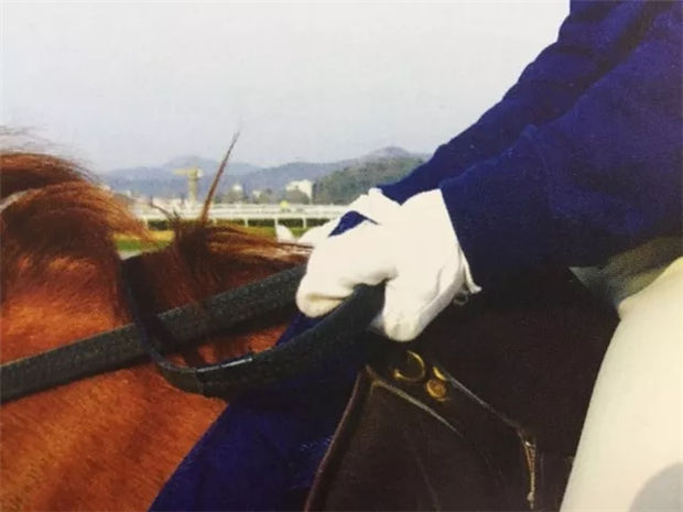 双手对握,让缰绳从小指与无名指间绕过。双拳在髻甲处保持直立,拳心相对,两拳相距10-15厘米。距小腹或前鞍桥10-15厘米。持缰的双手,想像手中握着两颗鸡蛋,轻轻的,安全的握着它们。