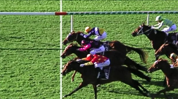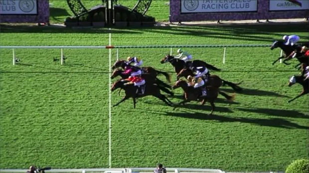 这场比赛途程1200米、奖金6.5万澳币,限三岁马参赛,是一场澳大利亚常见的短途赛事。本场比赛共有11匹赛驹列阵,可以看到,“匡提科”(5号马)出闸还是比较迅速的,但骑师莫恩(Andrew Mallyon)出闸后没有急于向前,领跑的5匹马基本平行跑位,各自占据一条行进路线。等到比赛过弯进入直道的时候,“匡提科”竟然被马群挤到了最后面!骑师莫恩直线向前的路线已经被彻底封死,他只好尝试移至外侧的空隙,就这样几乎平移了好几米才开始冲刺。这时距离终点只有200米,对于这群赛场上的速度精英而言,只需要10秒左右就可以跑完。“匡提科”515万的身价这时体现的淋漓尽致,犹如脚踩风火轮直奔终点凯旋门而去,最后肉眼看几乎是三匹马同时撞线!