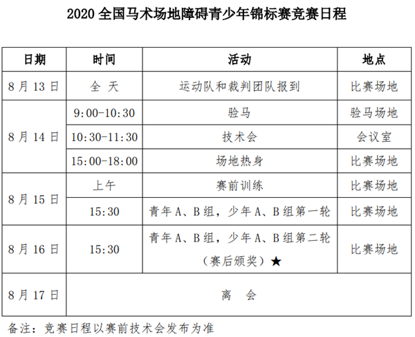 2020年全国马术场地障碍青少年锦标赛共设四个比赛项目: