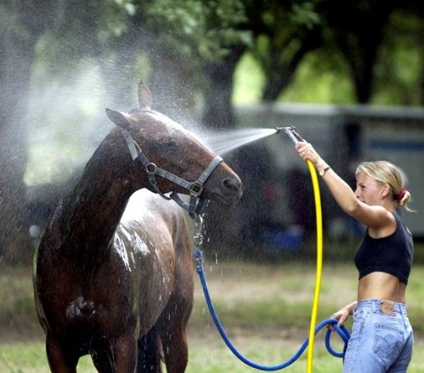 热应激或中暑的马必须立即降温处理,其它处理措施包括:停止所有运动,提供清凉干净的饮水,提供电解质等。中暑需要由兽医进行治疗,可能需要静脉给液或输电解质进行补水,使血液生化指标恢复正常。