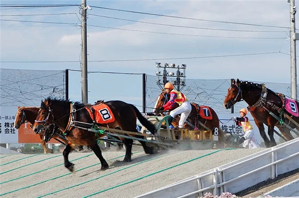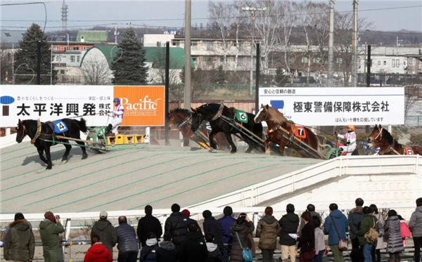 挽曳赛马与一般的赛马不同,在北海道历史悠久,参与比赛的挽曳马体型比我们常见的马要巨大许多。或许也是因为超大的体型,“掩盖”了这匹马怀孕的真相吧!看着挽曳马拉着重重的铁雪撬,吃力的拉着跑上坡,观众也会忍不住跟着紧张起来,而接着看它们顺利的往下冲,画面又会帅极了!