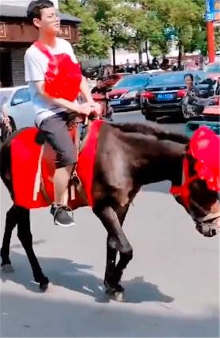 古时有状元骑马游街的习俗,没想到今时今日我们还能见到这一场面。
