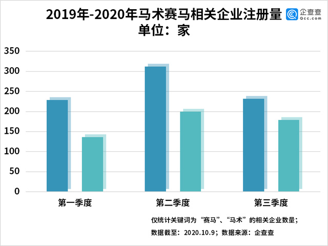 企查查数据显示,2020年前三季度共注册赛马马术相关企业515家,同比减少33.4%。其中,三季度共注册赛马马术相关企业179家,环比减少10.5%,同比减少22.8%。
