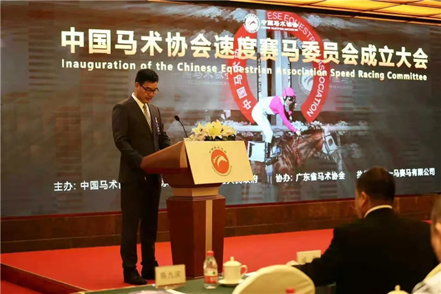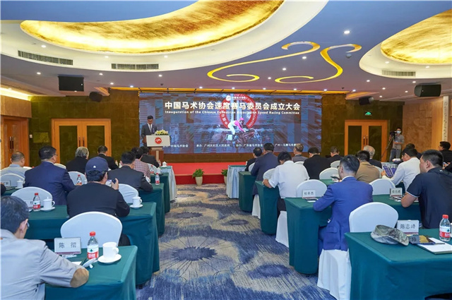 11月26日下午,中国马术协会速度赛马委员会成立大会在广州市从化区举行。中国马术协会主席张小宁,中国马术协会秘书长钟国伟,中国马术协会司库成庆,广东省体育局副局长许建平,广州市从化区委副书记、区长刘棕会等领导,以及全国各地的体育界、马术/赛马界专家、委员、马主等百余人出席。亚洲赛马联盟主席、香港赛马会行政总裁应家柏专程发来贺信,称这一举动体现了中国马术协会推动中国速度赛马产业长远发展的坚定承诺。 会议由中国马术协会商务部部长、新当选的中国马术协会速度赛马委员会常务副主任陈九庆主持。
