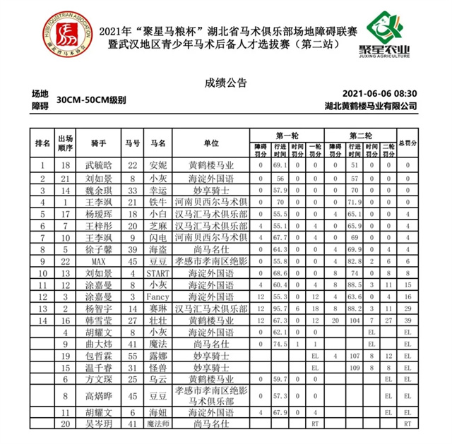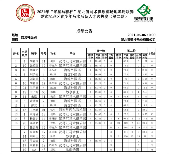 2021湖北省马术俱乐部场地障碍联赛第二站战报
