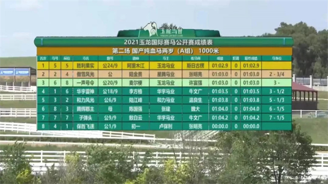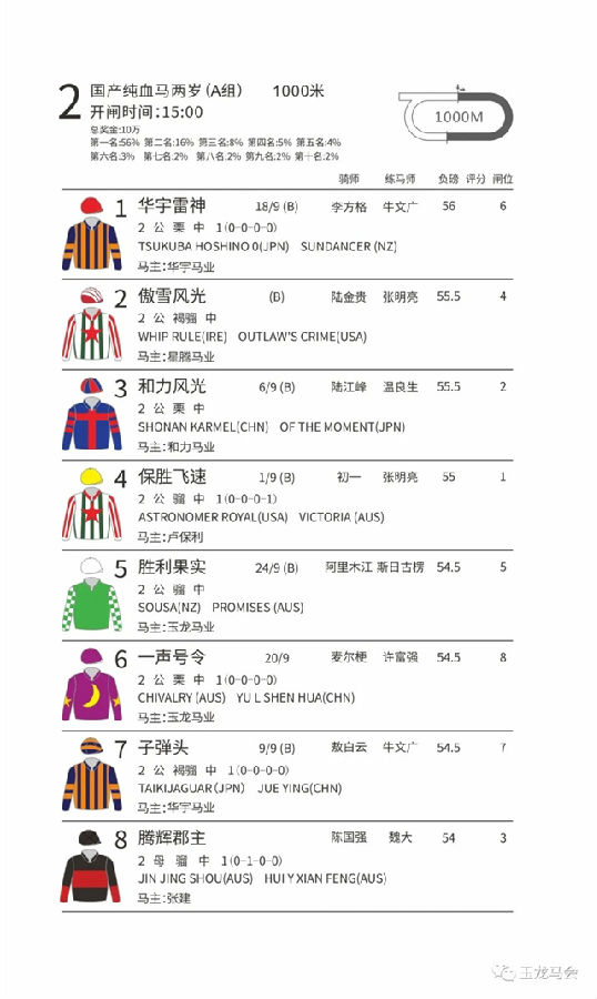 第二场,国产纯血马两岁(A组)1000米总奖金10万