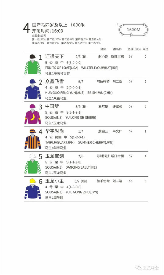 第四场,国产马四岁及以上 1600米比赛!总奖金10万